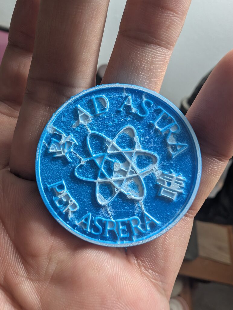 - Back: “Ad Astra Per Aspera” with an atomic motif, blending philosophy and science.